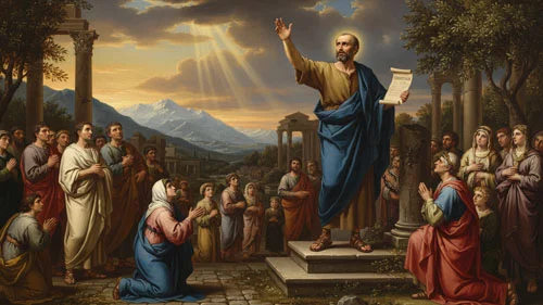 Colosenses 1, 21-23: "También a vosotros, que en un tiempo erais extraños y en vuestra mente erais enemigos a causa de las malas obras, ahora os ha reconciliado en el cuerpo de la carne de Aquél por medio de la muerte, para que os presente santos e inmaculados e irreprensibles delante de Él. Si es que en verdad permanecéis fundados y asentados en la fe e inconmovibles en la esperanza del Evangelio que oísteis...".